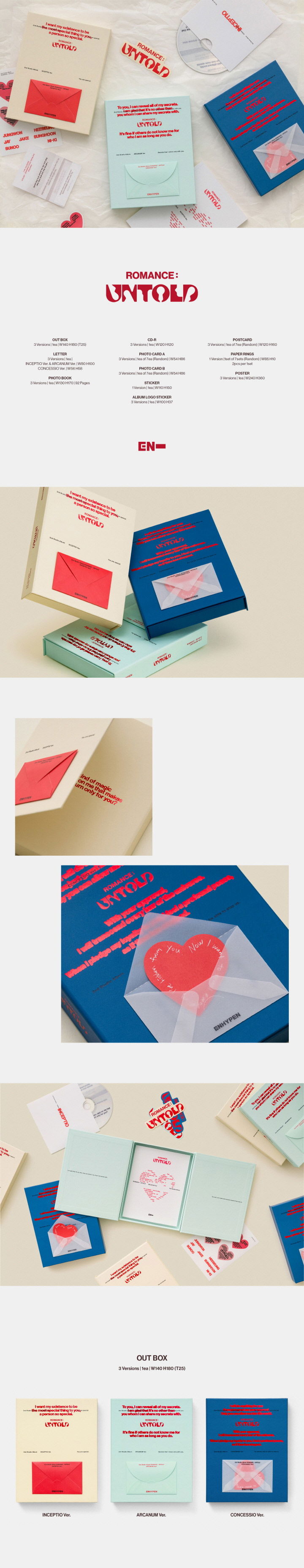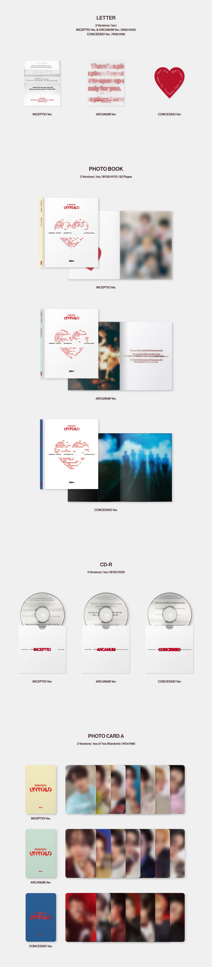 El álbum ROMANCE : UNTOLD de ENHYPEN contiene 8 canciones. El álbum fue lanzado el 12 de julio de 2024 y tiene "XO (Only If You Say Yes)" como canción principal.