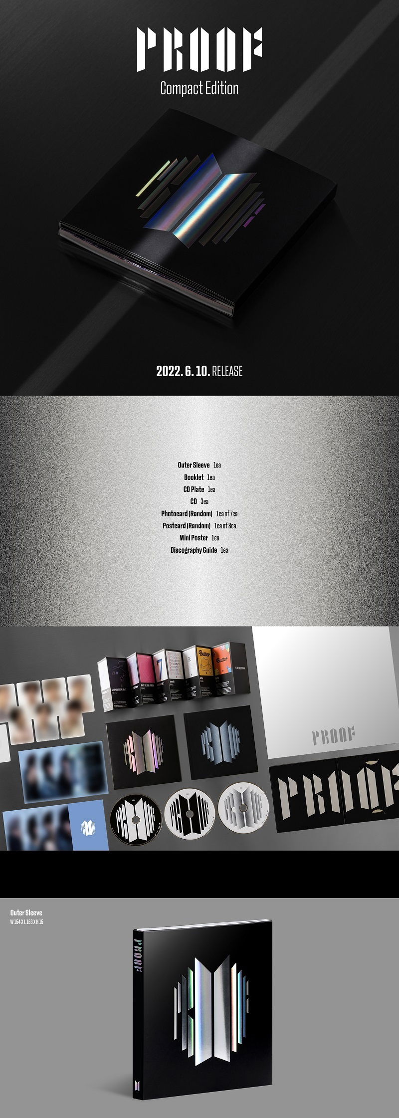 El álbum antología "Proof" de BTS, en su versión compacta, contiene un total de 48 canciones. La versión compacta incluye 3 CD con todas las canciones, incluyendo éxitos, solos, subunidades y canciones nuevas.