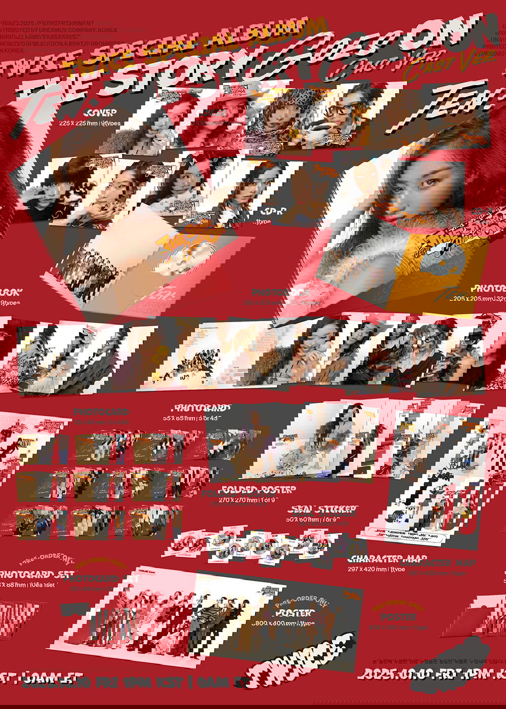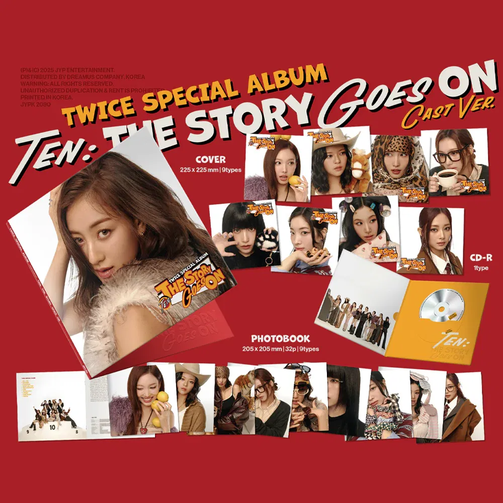 El álbum especial de TWICE, TEN: The Story Goes On, tiene 10 canciones: la canción principal grupal "ME+YOU" y nueve solos de cada miembro: "MEEEEEE" de Nayeon, "Fix a Drink" de Jeongyeon, "Move Like That" de Momo, "Decaffeinated" de Sana, "ATM" de Jihyo, "Stone Cold" de Mina, "Chess" de Dahyun, "In My Room" de Chaeyoung y "Dive In" de Tzuyu. El álbum se lanzó el 10 de octubre de 2025 como parte de su décimo aniversario.